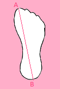 2. Odrysowane stopy zmierz od wierzchołka dużego palca do zakończenia pięty po przekątnej.