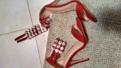 - Wyjątkowo stylowe sandałki na wysokiej szpilce w kolorze czerwonym. Cholewka wykonana z zamszu ekologicznego, zaś wkładka pokryta skórą ekologiczną. Wokół kostki paseczki zapinane na sprzączki z ozdobnymi cyrkoniami. Doskonale podkreślą wieczorne kreacje!